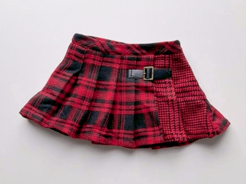 W20 7510聖誕過年毛呢格紋短裙-130cm