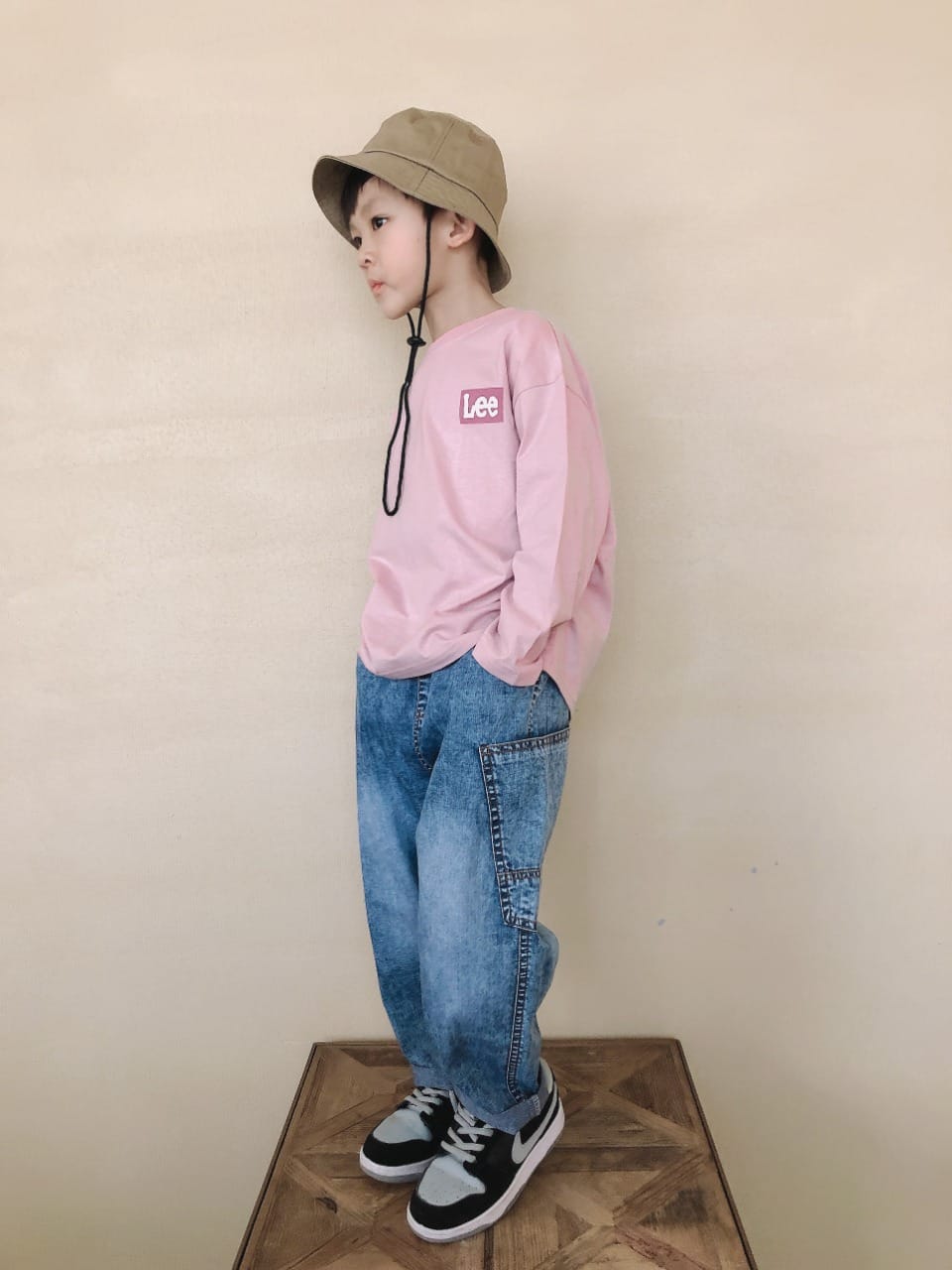 W45 9145男大童Lee印花薄長潮T-140cm