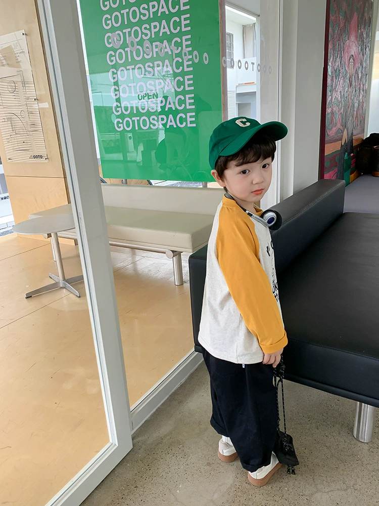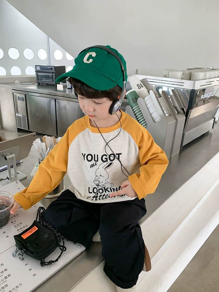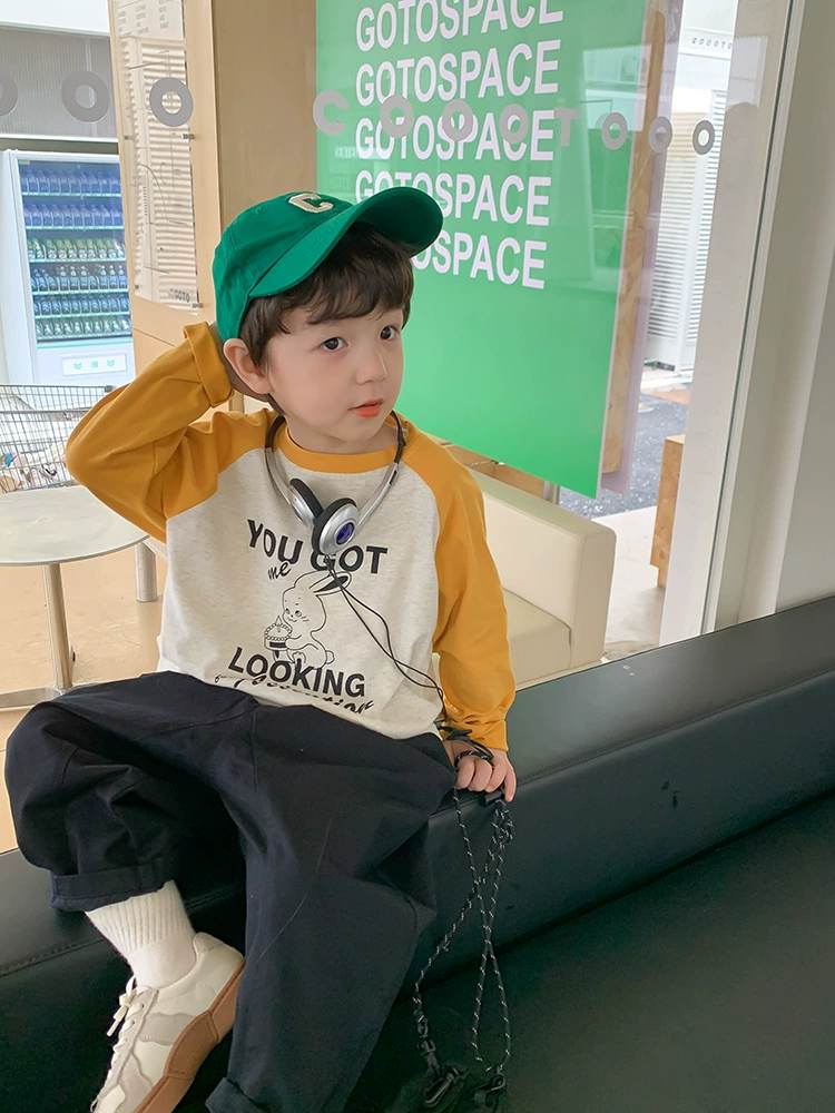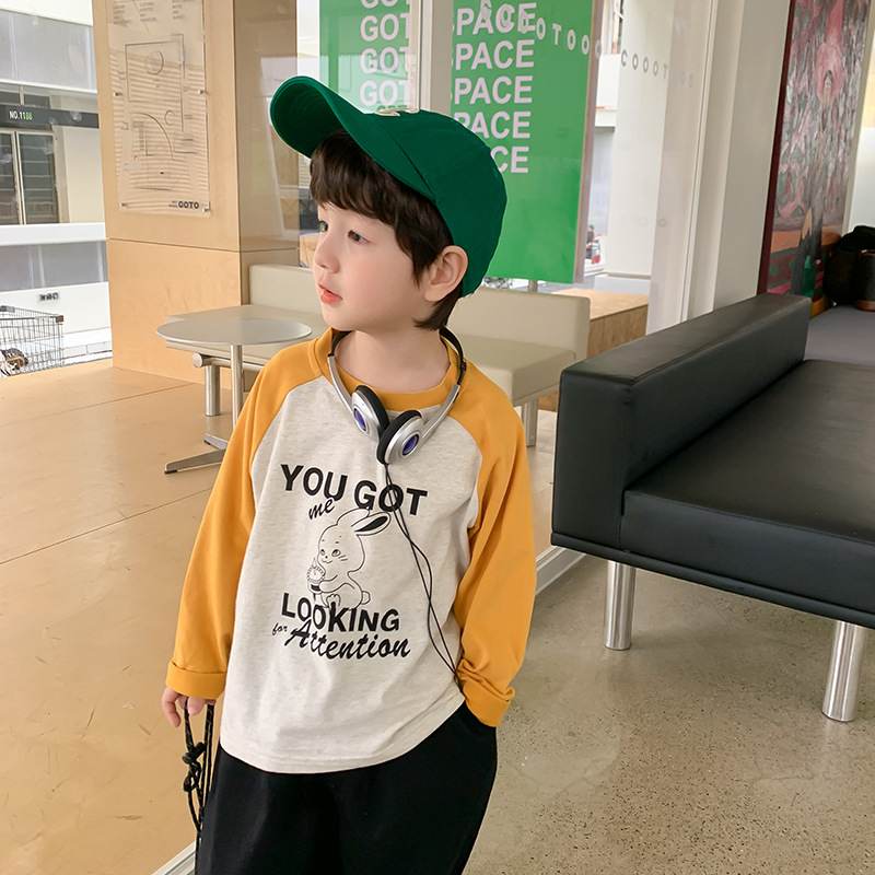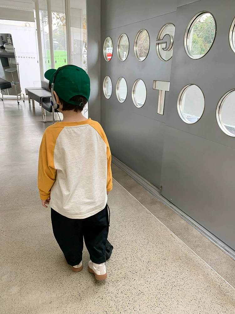 W06 96328插肩撞色春秋薄棉T-黃150