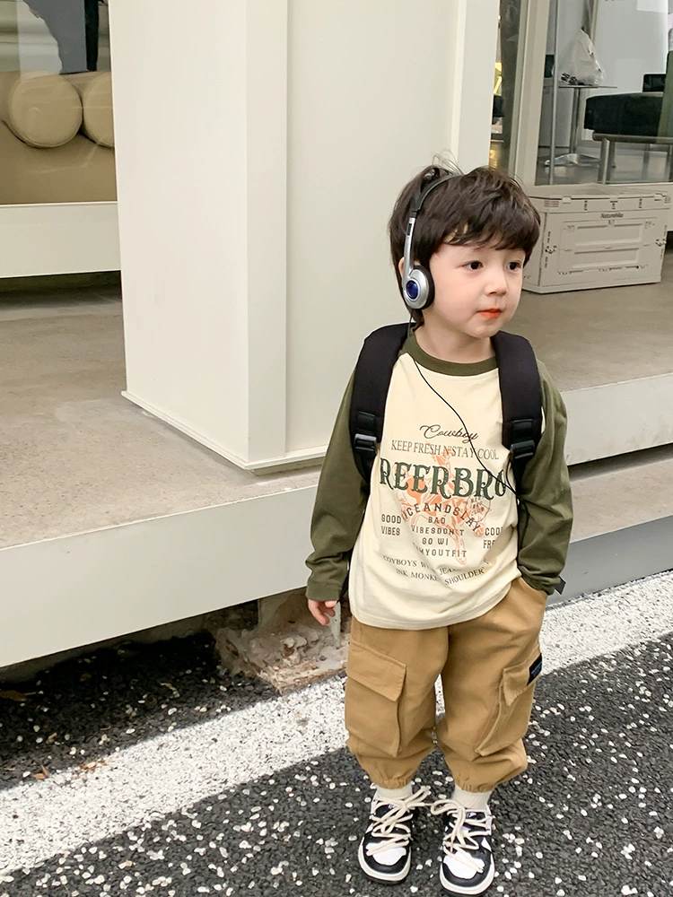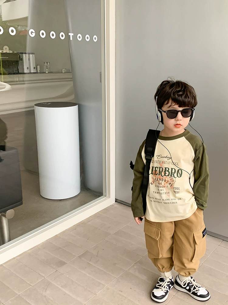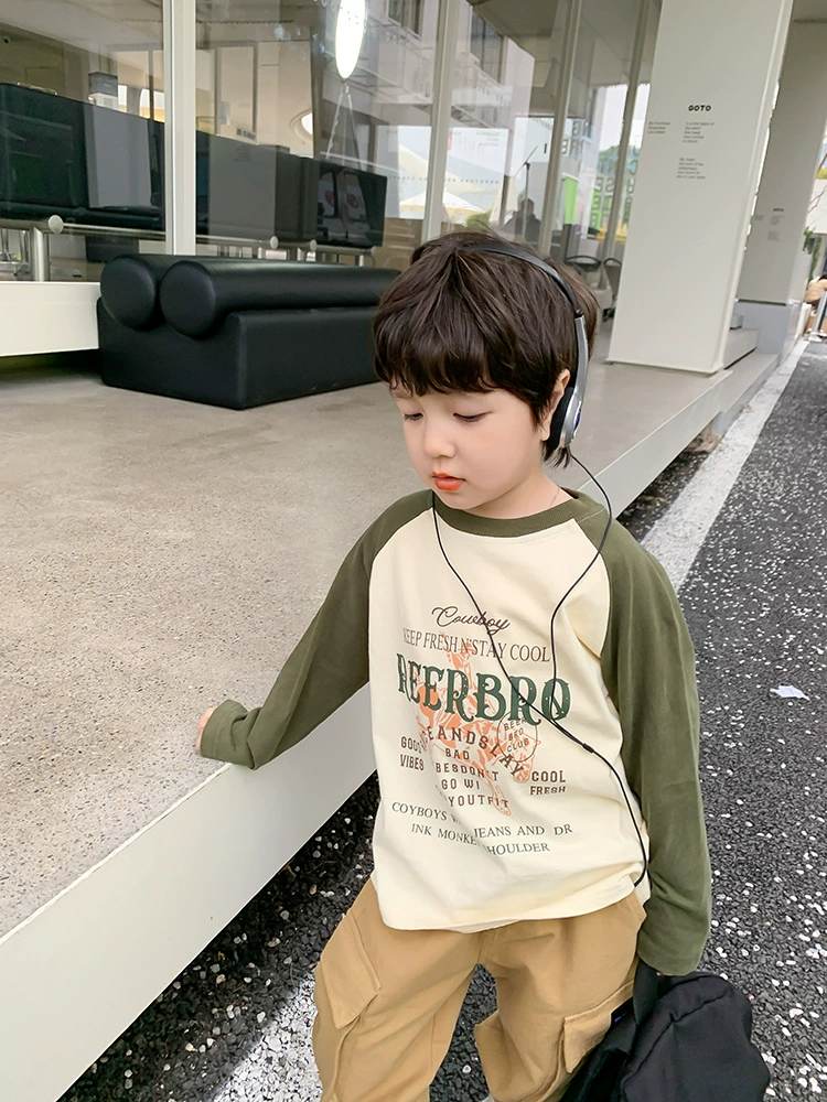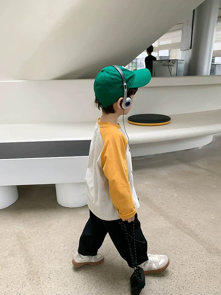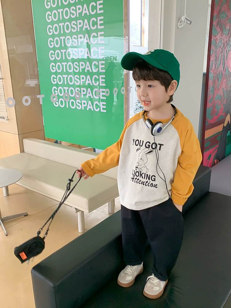 W06 96328插肩撞色春秋薄棉T-黃150