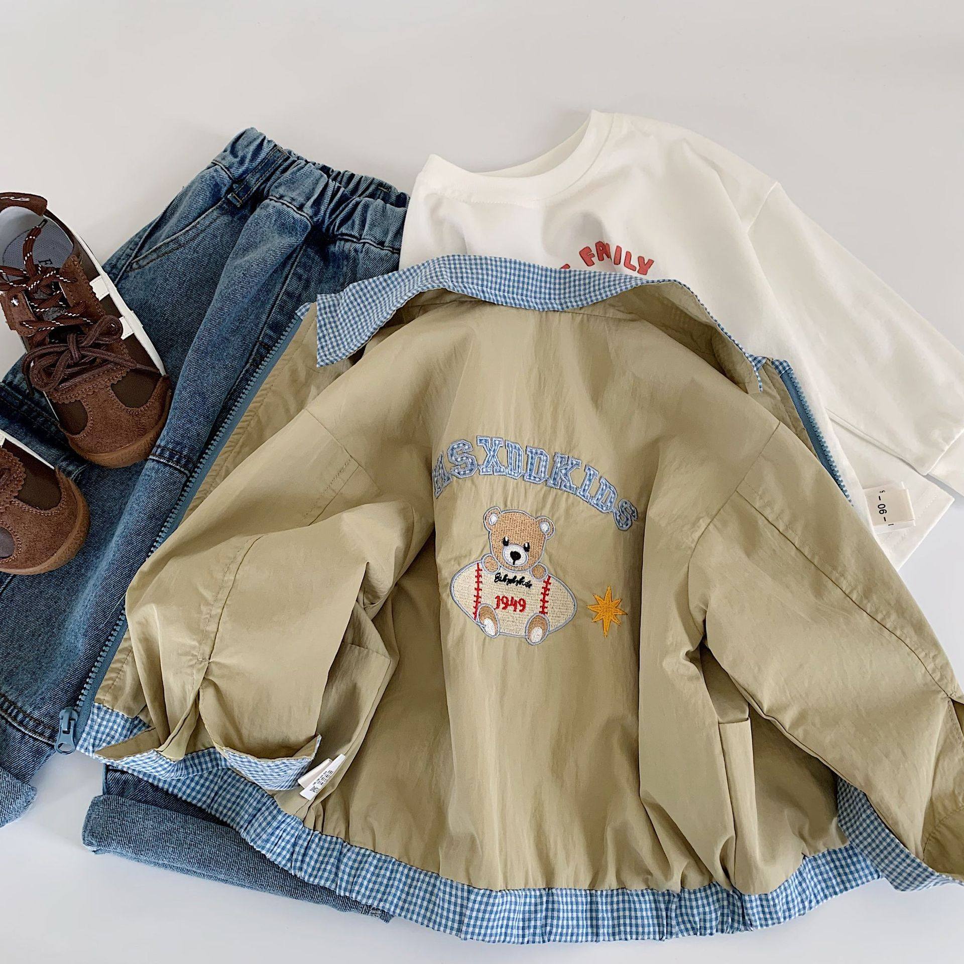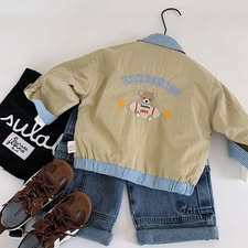 W09 3215 男童秋款拚色格子外套